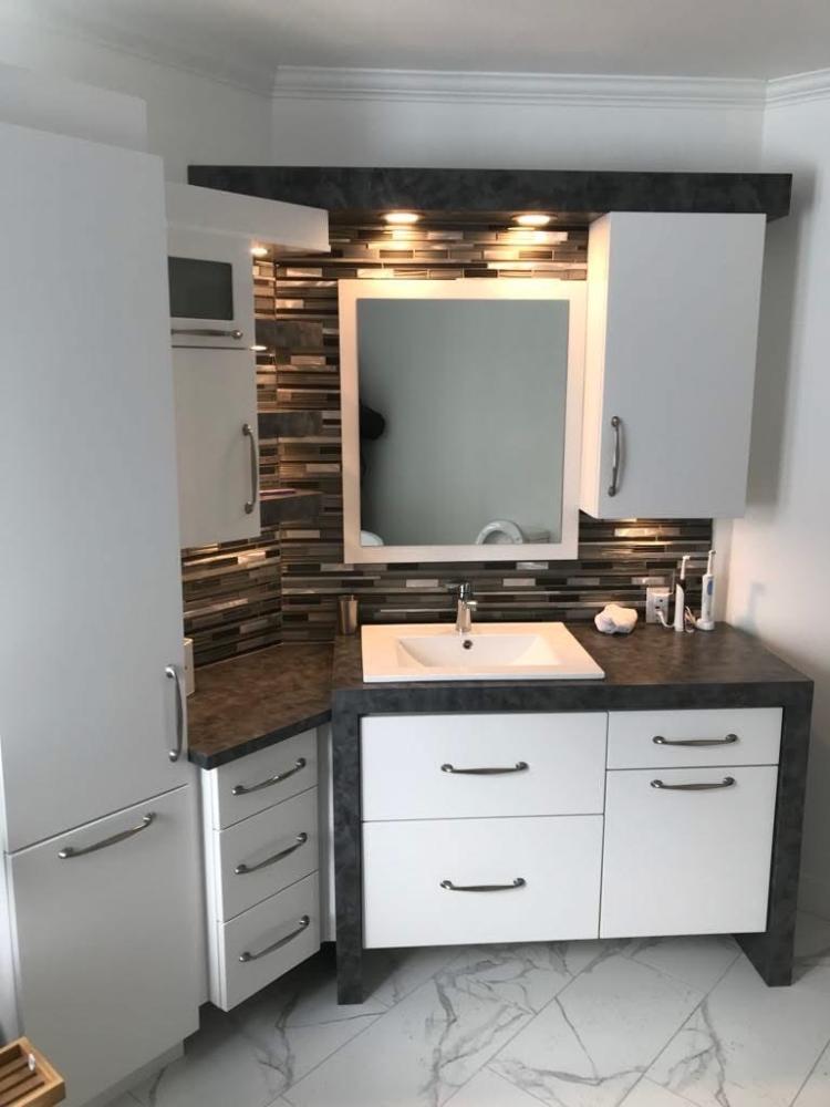 Mobilier élégant et fonctionnel pour optimiser l’espace : vanités, armoires, meubles-lavabos.