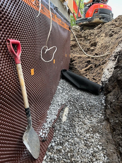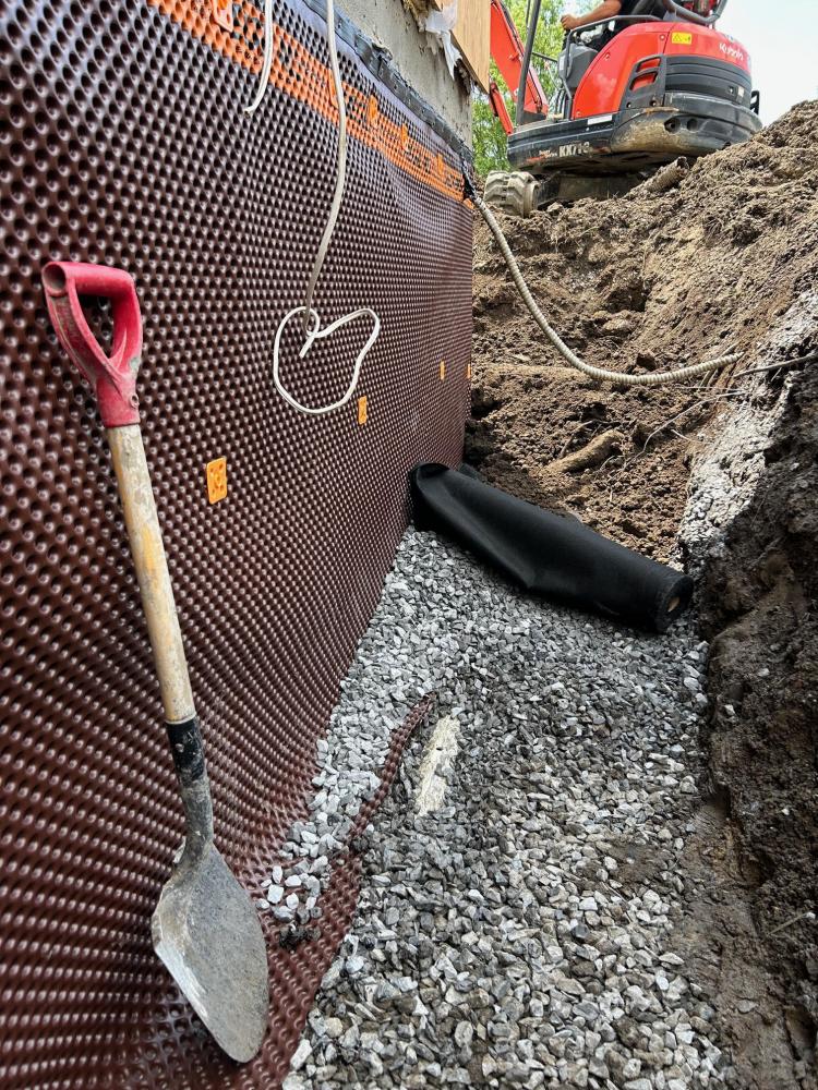 Imperméabilisation de fondation : membranes, plaques d’acier et colmatage pour protéger vos murs contre l’humidité.